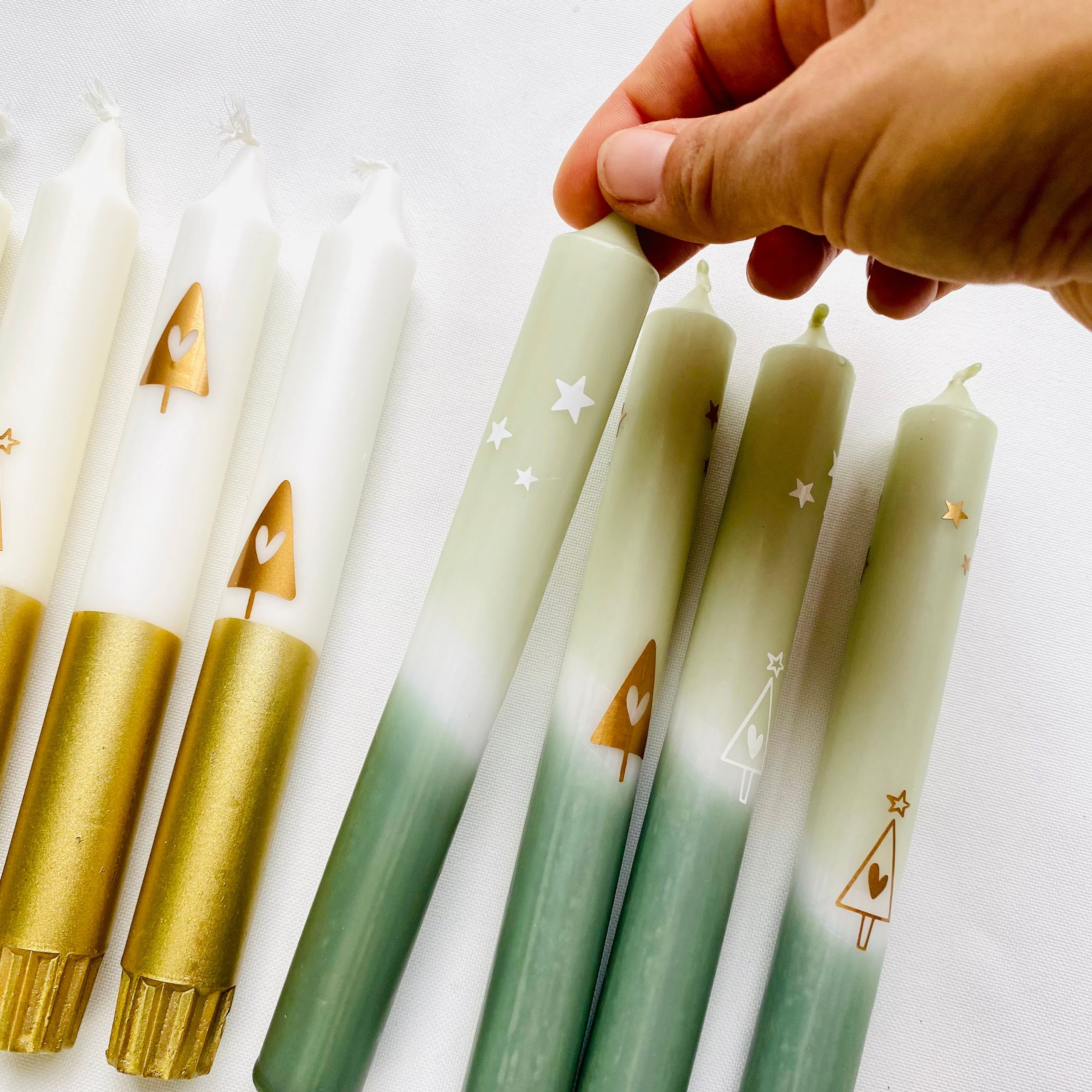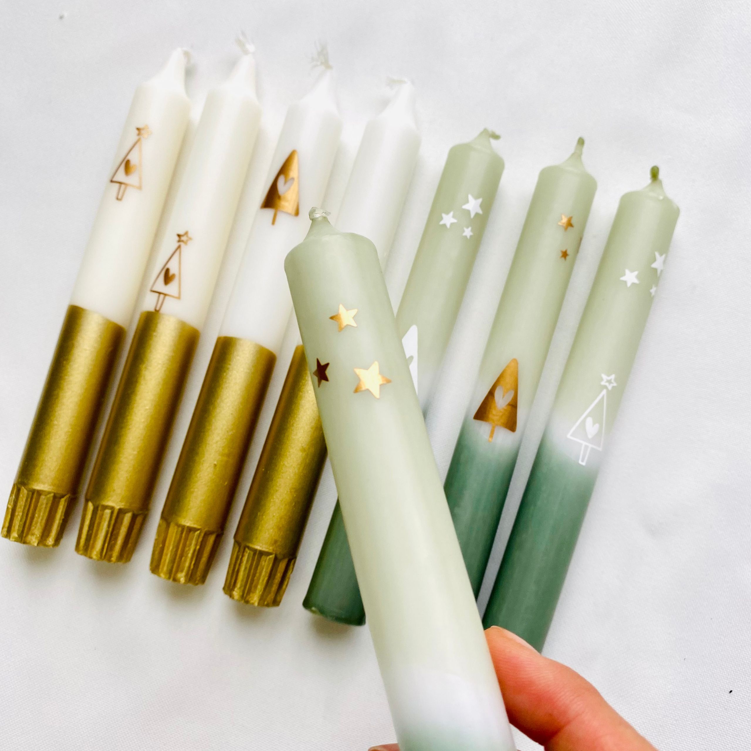 Farbe | Kerze – gold, Kerze – grün |
